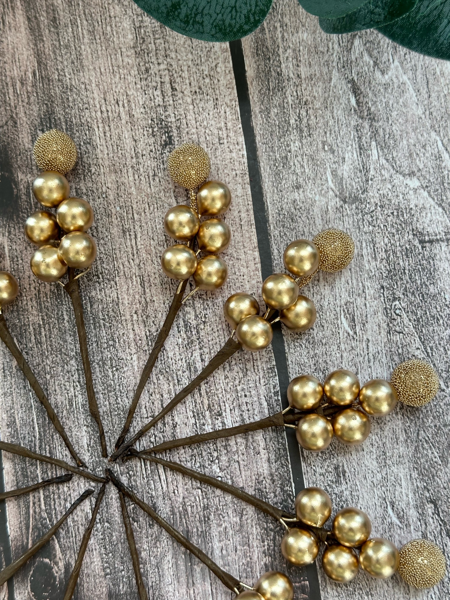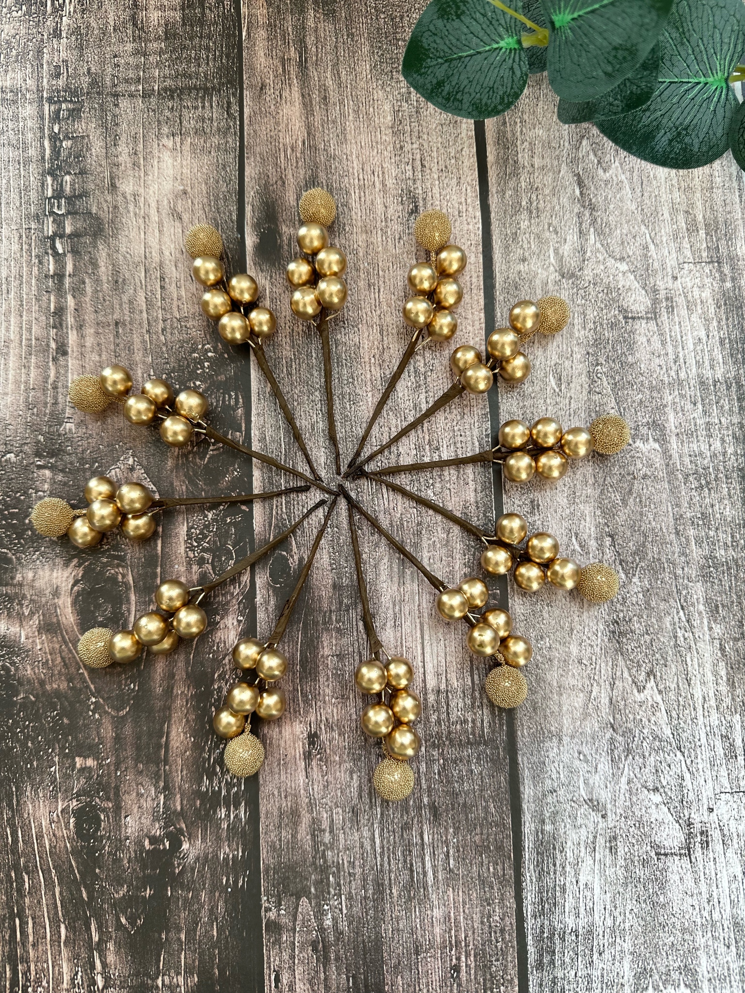 В комплекте 12 веточек с ягодами золотого цвета, искусственные ветки используется для украшения интерьера, в цветочных композициях, для декорирования новогоднего и пасхального венка, украшения елки. Растение сделано из высококачественных материалов, Без запаха. Ягоды на веточке - это новогодний декор, который прекрасно дополнит ваше праздничное пространство. Рябина искусственная с блестящими ягодками представляет собой привлекательный элемент для создания уютной новогодней атмосферы.